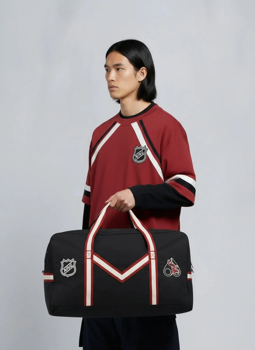 Inspired by the classic hockey bag, we created a high-performance branded version in honor of the Moose Knuckles x NHL collaboration.