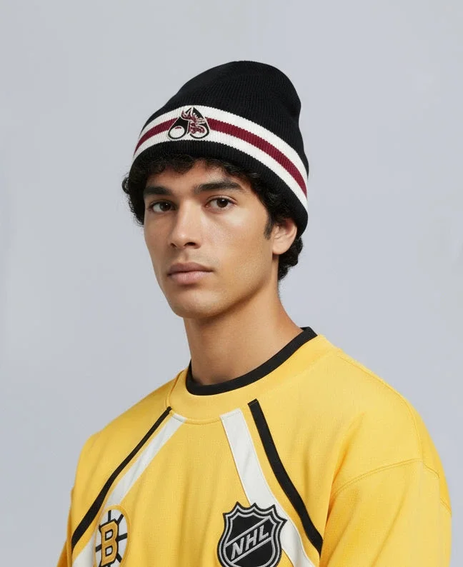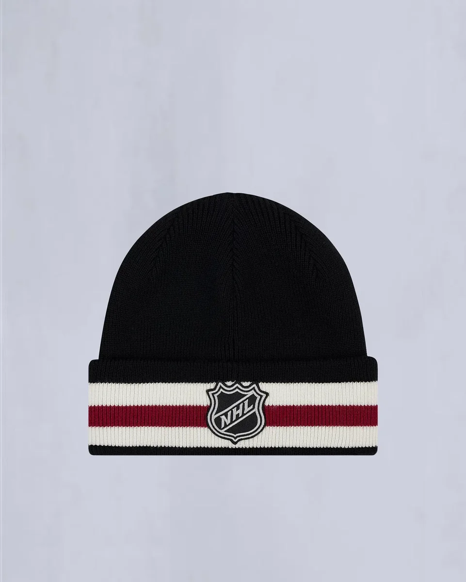 Stay warm in and out of the arena with our cozy Moose Knuckles beanie, celebrating the NHL x Moose Knuckles partnership.