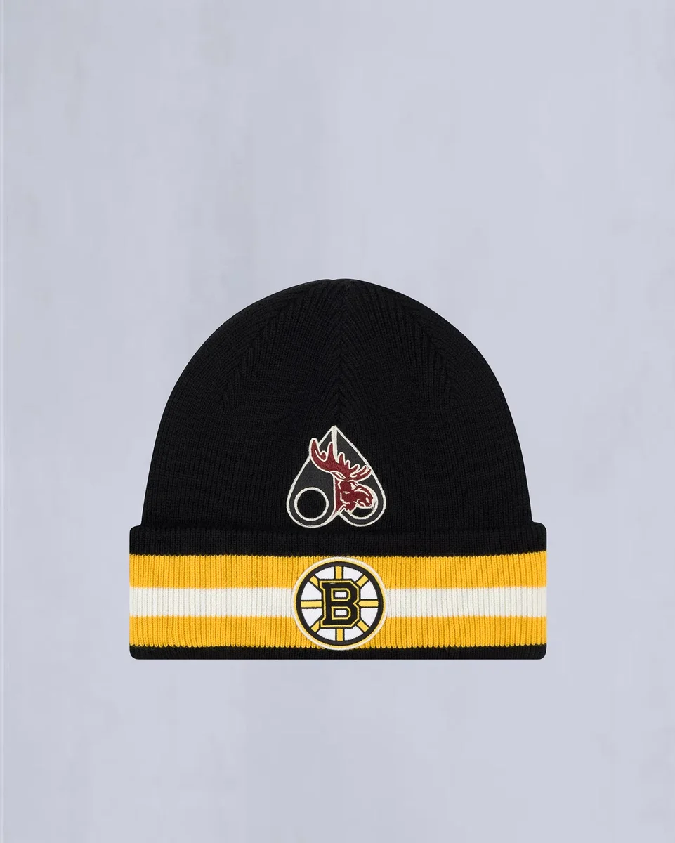 Stay warm in and out of the arena with our cozy Bruins beanie, celebrating the NHL x Moose Knuckles collaboration.