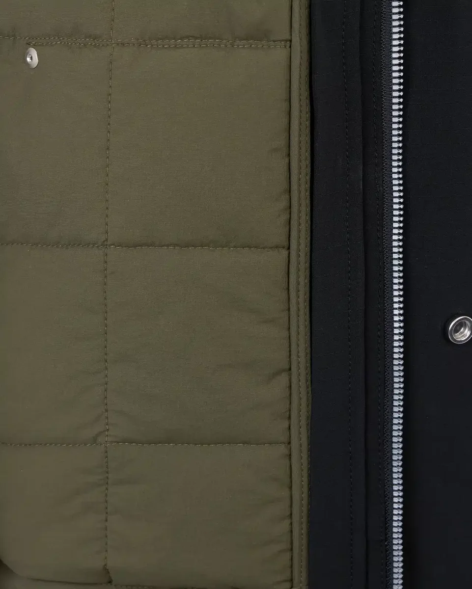 - Shell: 2-Way Zipper with Placket and SnapsLiner: 1-Way Zipper