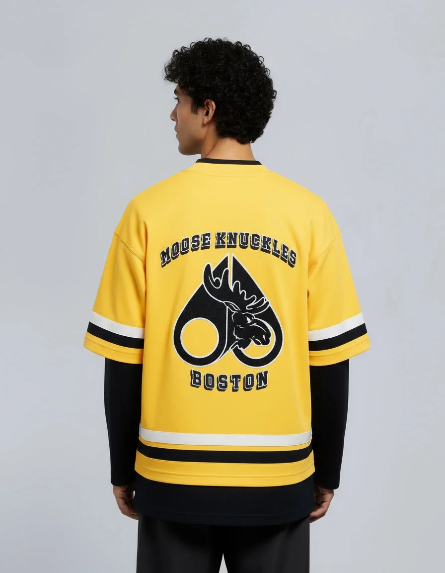 In honor of the NHL x Moose Knuckles partnership, we created a branded tee celebrating the Boston Bruins with their signature colorway.