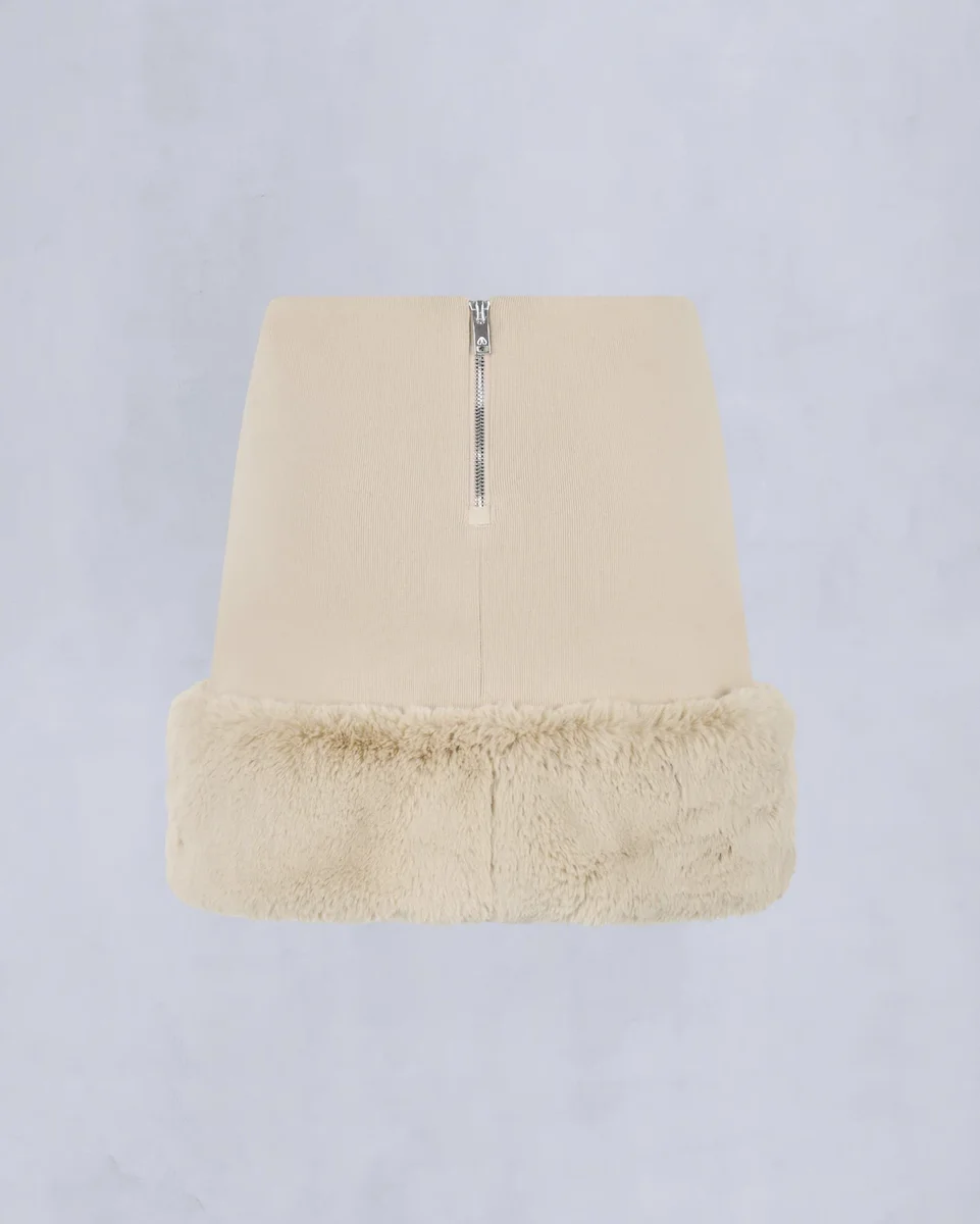 Step into playful elegance with our Bunny Collection’s plush-finish mini skirt, designed to add a touch of whimsy to your wardrobe. Embrace the perfect blend of