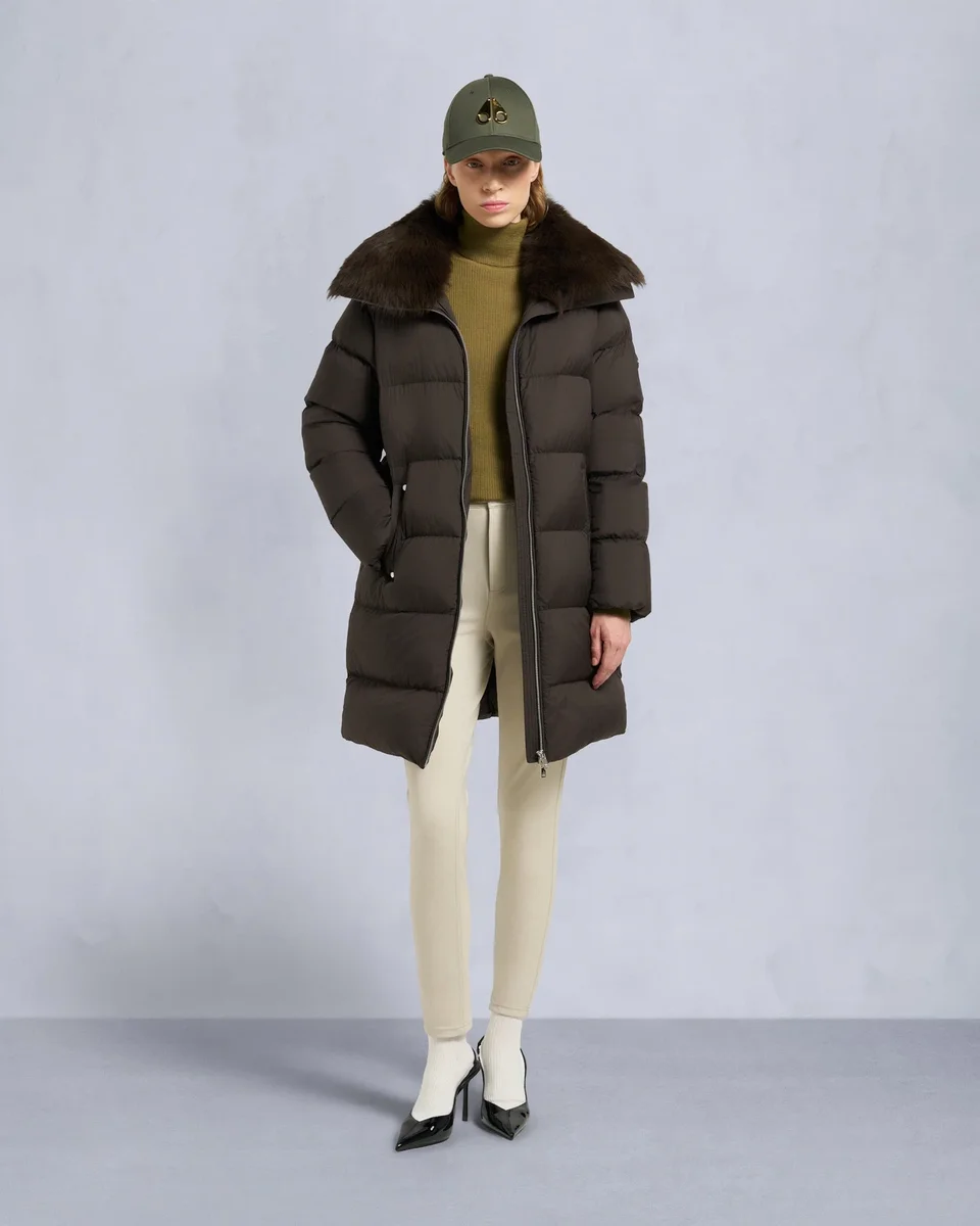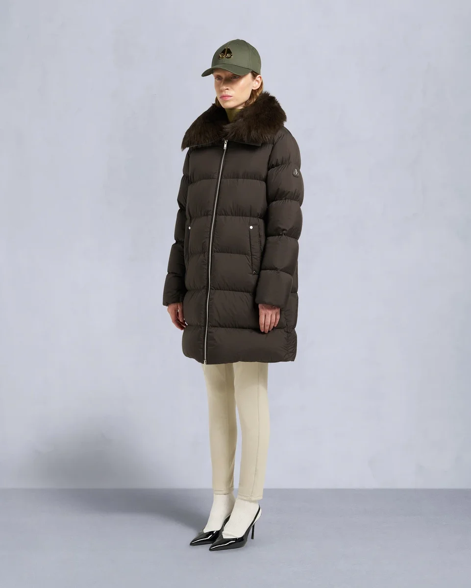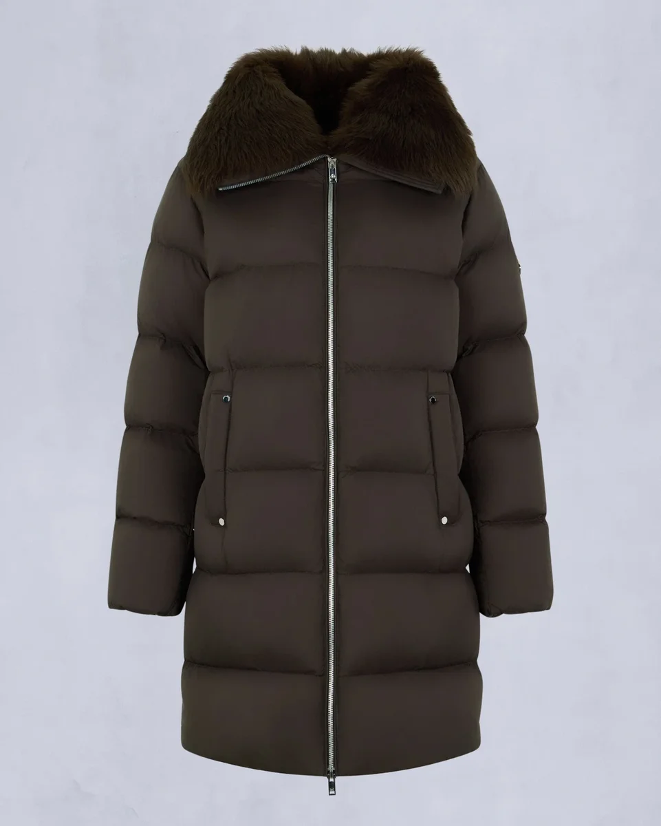 Belle Dune Long Shearling Trim Puffer