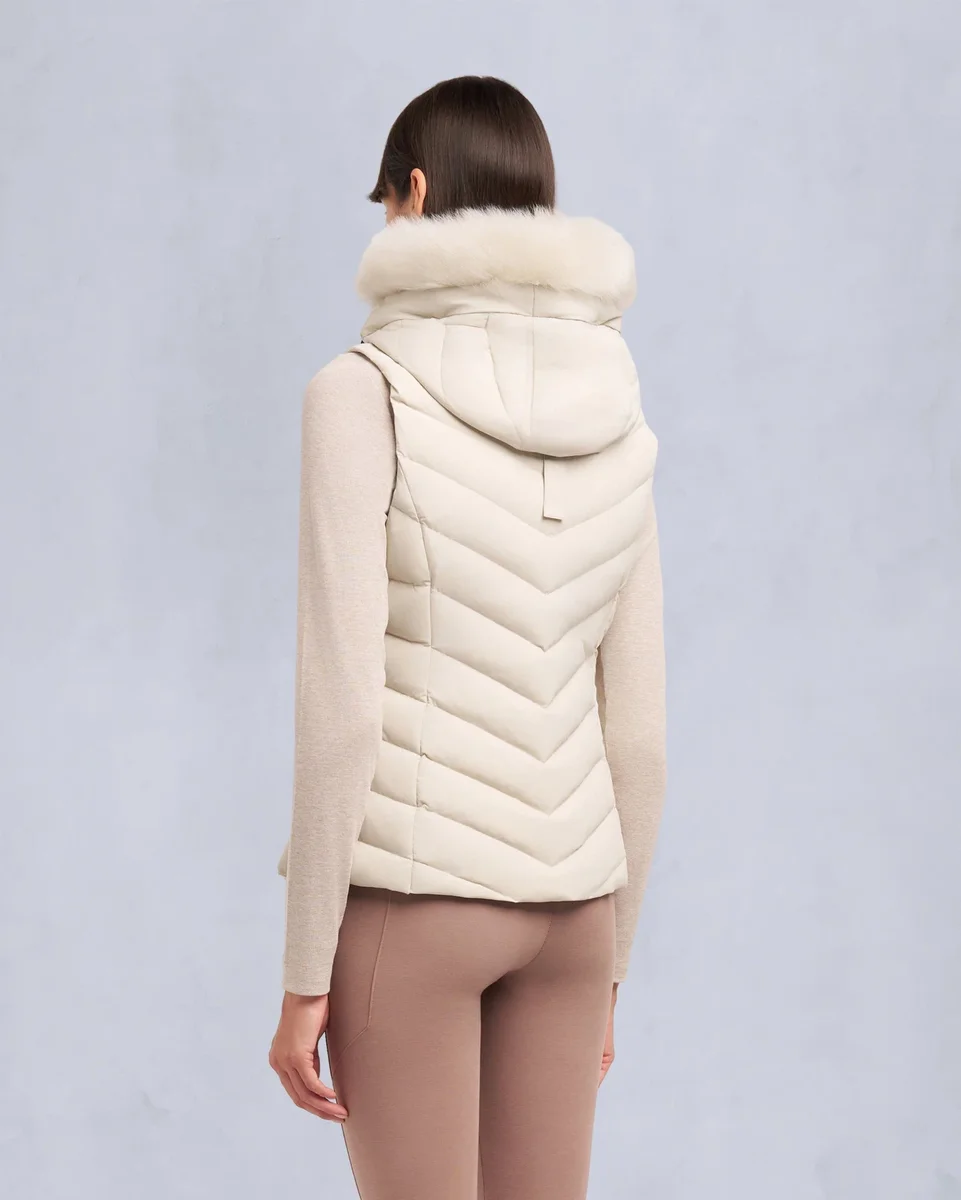 Sporty meets chic with the down-filled, water-repellent, wind-resistant Elora Vest. With a stretchy fabrication, it’s designed for active adventures and city da