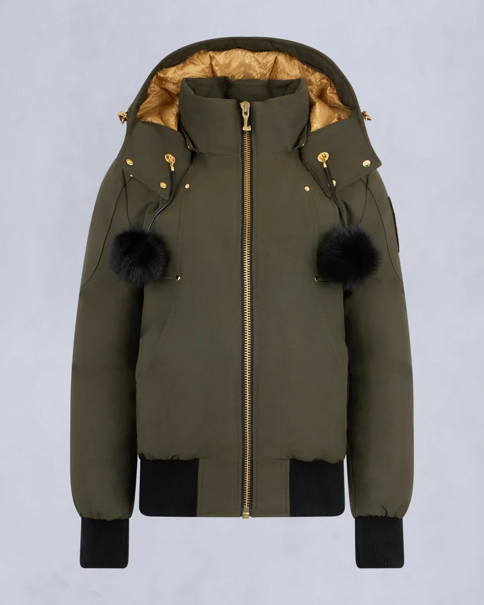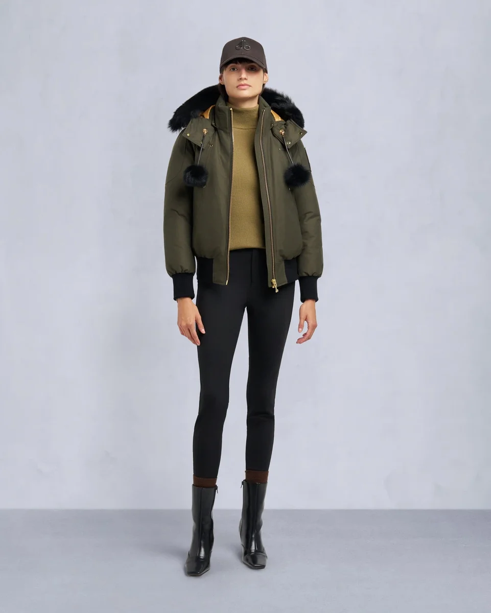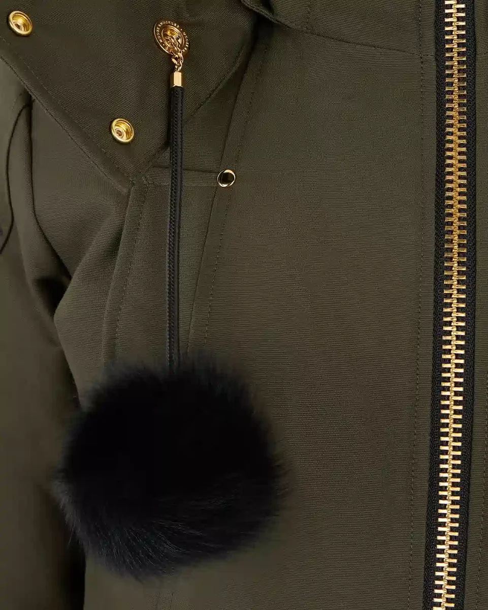 - Removable Hood with Removable Shearling Trim And Pom Poms
