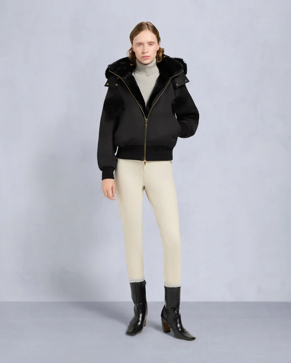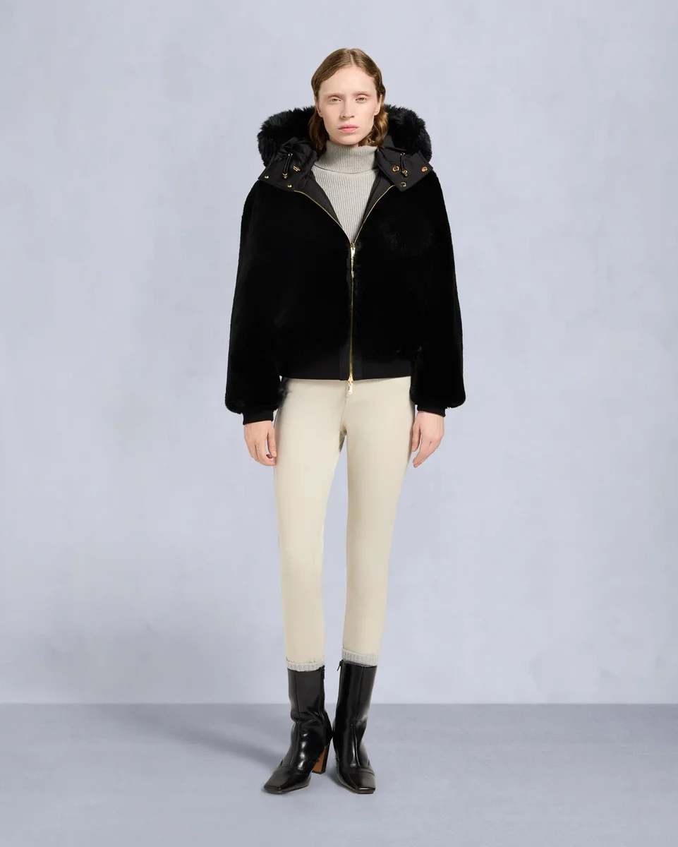 - Removable Hood with Faux Fur Trim And Removable Faux Fur Pom Poms