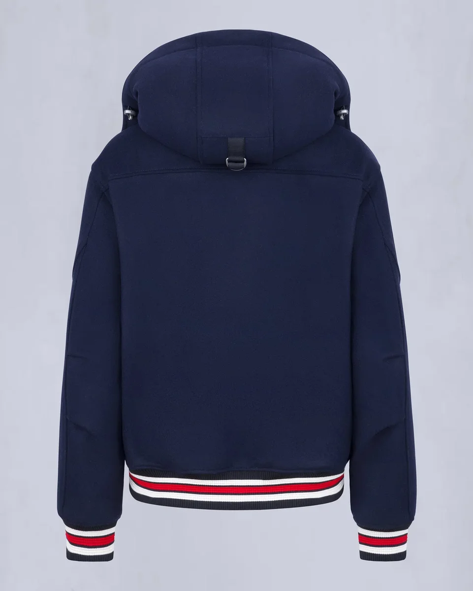 - Removable Hood with Removable Shearling Trim And Pom Poms