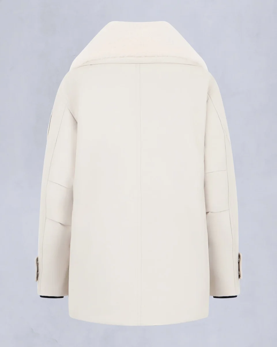 Staying warm never has to mean compromising style. The Aurora Shearling Jacket is the perfect combination of chic form and supremely cozy function. Featuring 90
