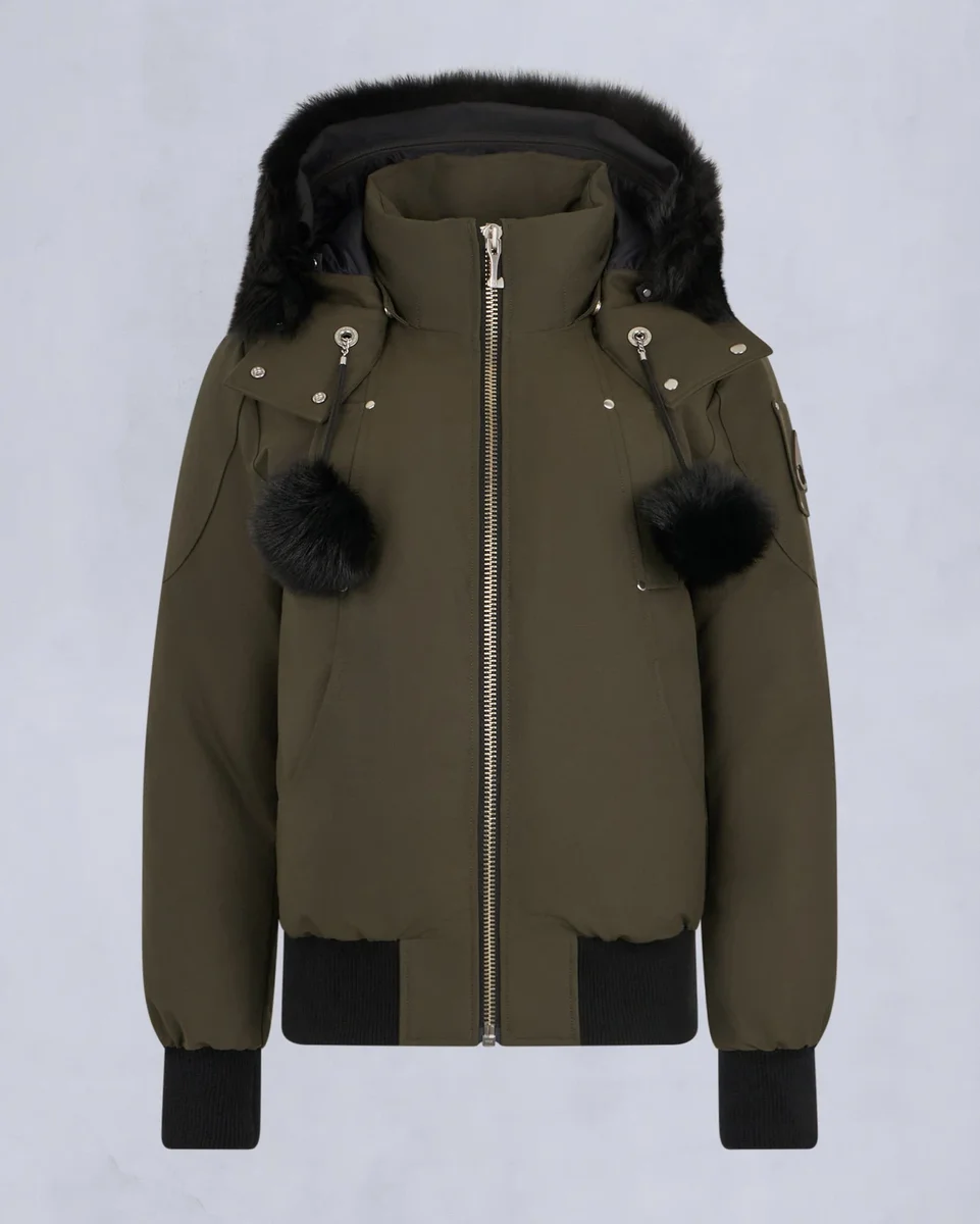 - Removable Hood with Removable Shearling Trim And Pom Poms