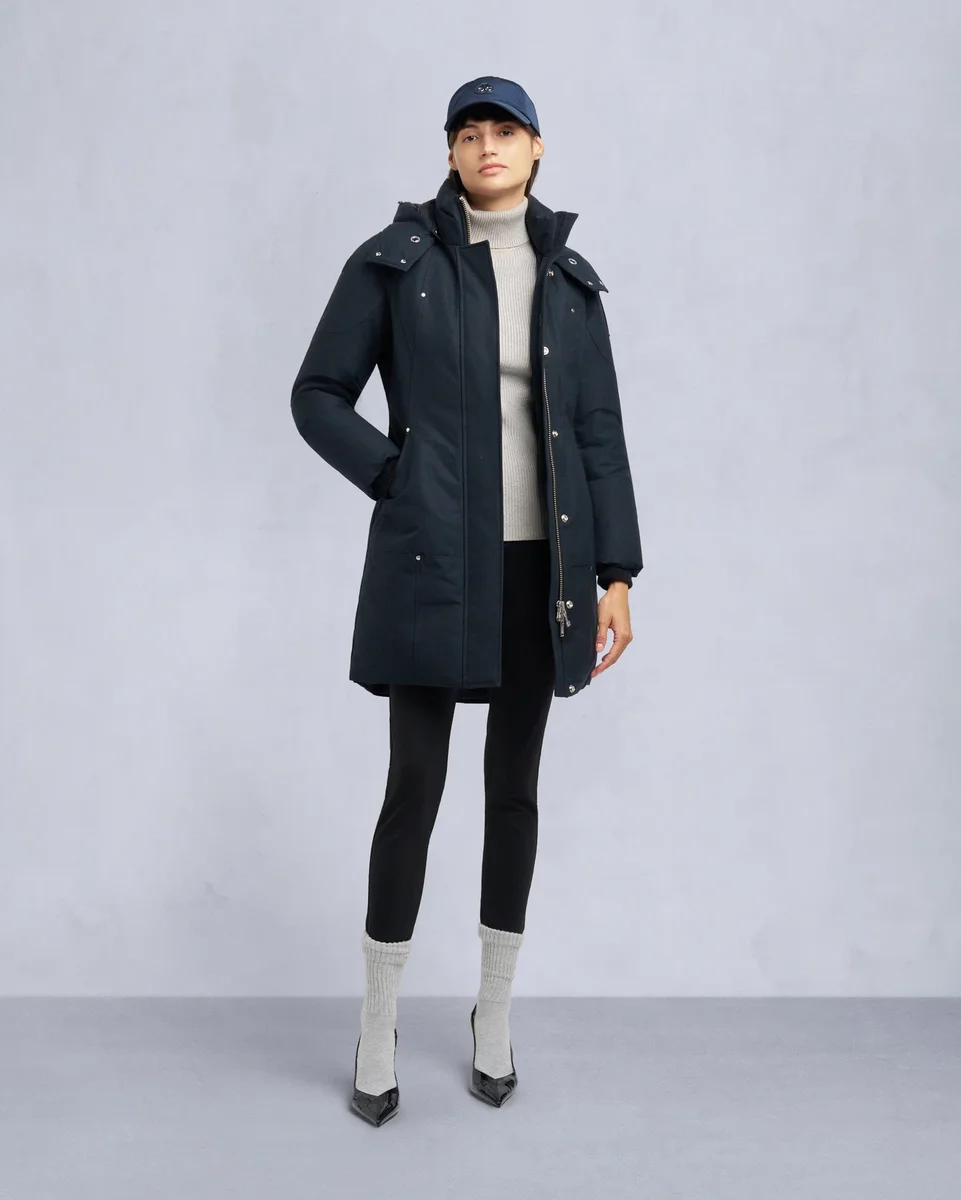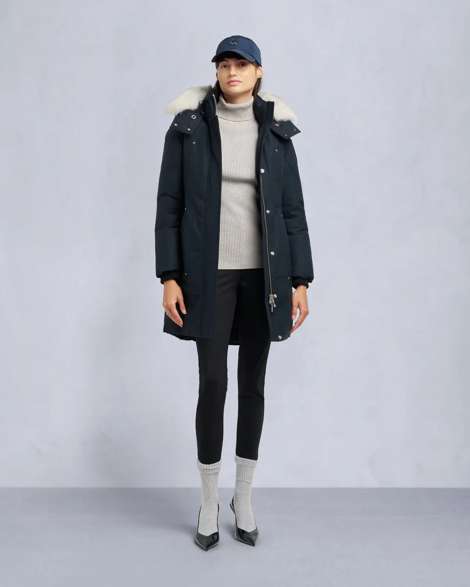- Removable Hood with Removable Shearling Trim And Pom Poms