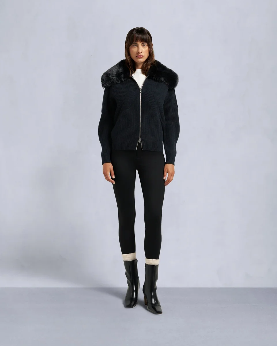 Exude easy elegance with the Corina full-zip, made from a cozy wool blend and featuring a luxurious removable faux fur collar.