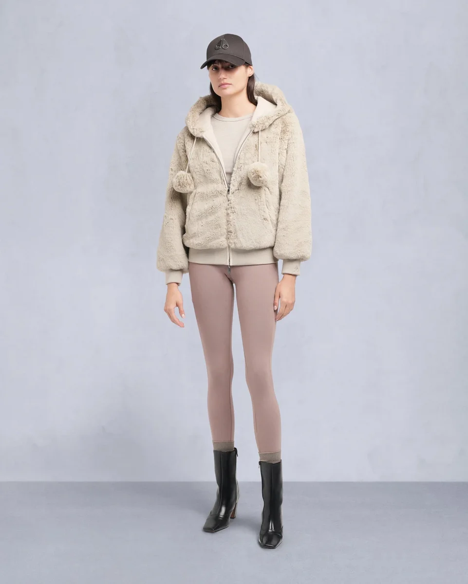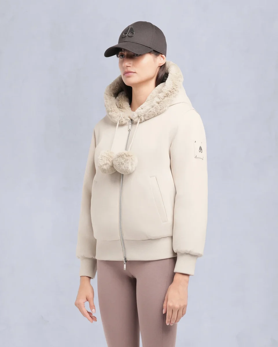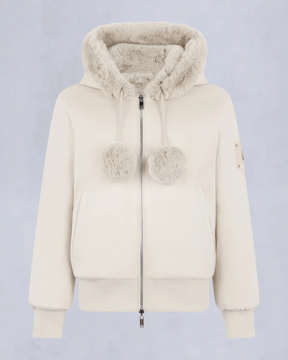• Hood with Removable Faux Fur Pom-Poms