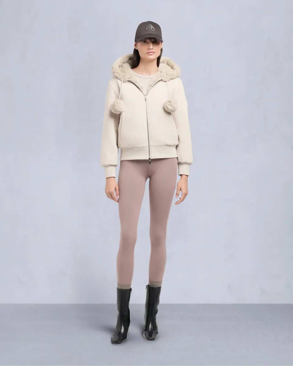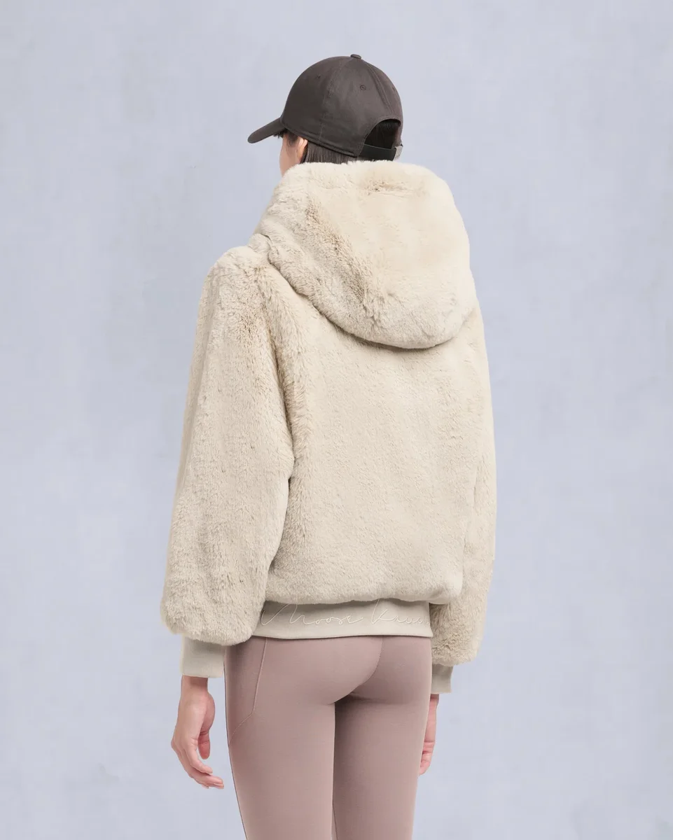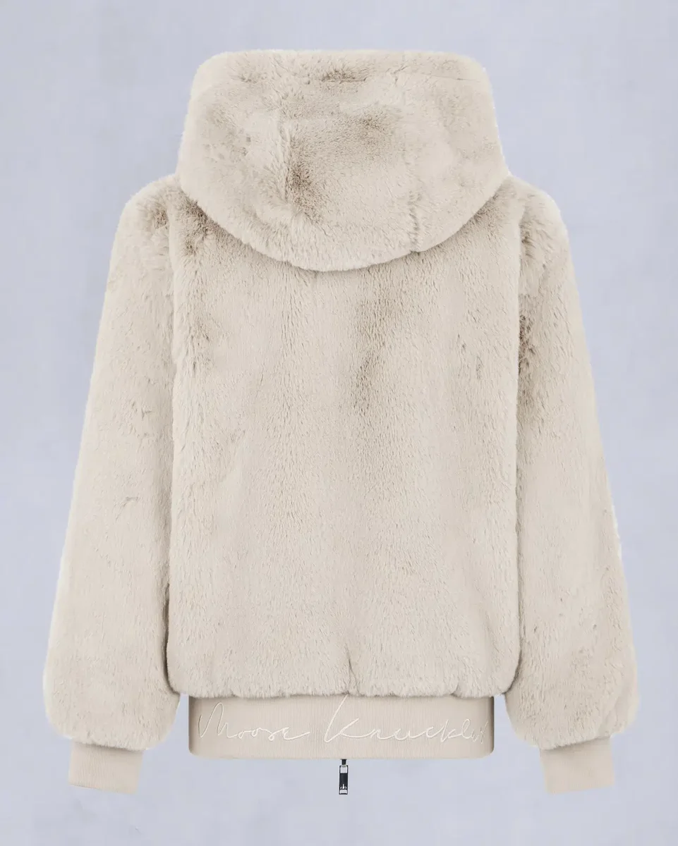 • Hood with Removable Faux Fur Pom-Poms